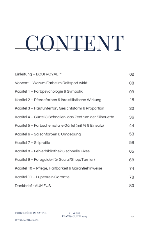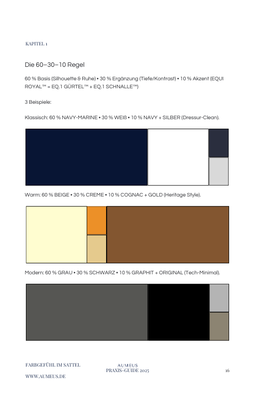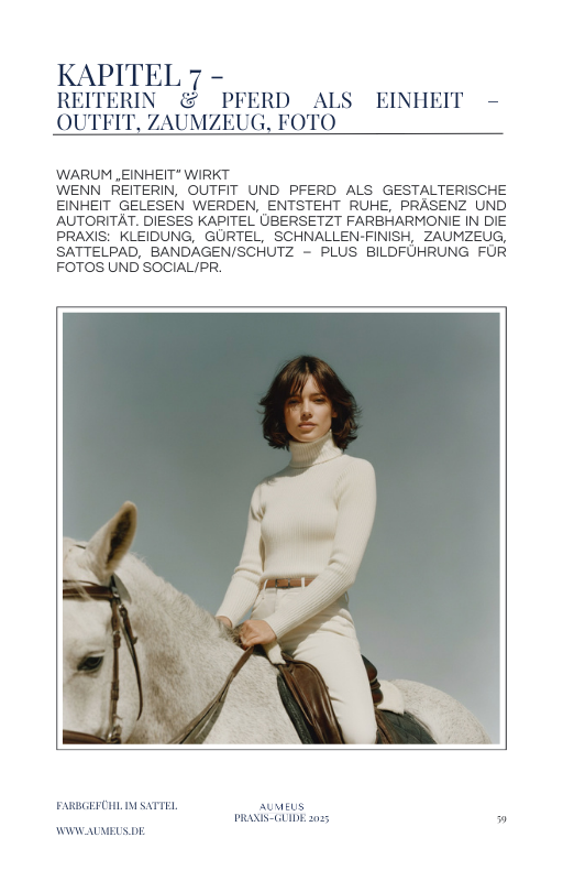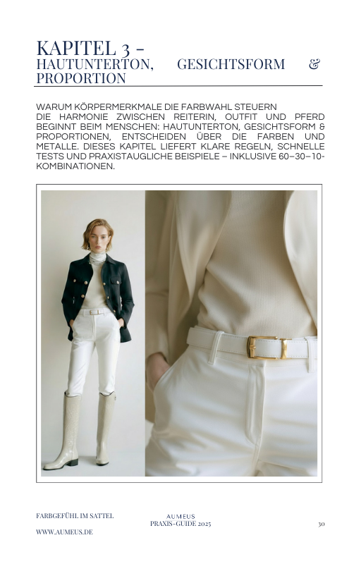 Einfache 60–30–10-Kombinationen, abgestimmt auf Hauttyp, Pferdefarbe und Anlass – von Training bis Turnier.