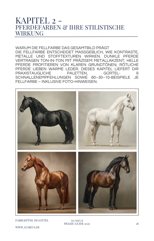 Lerne, wie Farben deine Ausstrahlung, die Wirkung deines Pferdes und die gesamte Silhouette formen.